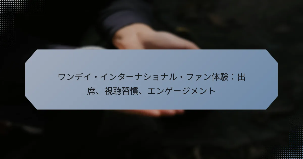 ワンデーインターナショナル(ODI)のファン体験は、観客数、視聴習慣、エンゲージメントレベルに影響され、これらはチームのパフォーマンスや試合の雰囲気といった要因によって形成されます。観客数の傾向は、場所や試合の重要性によって大きく異なることがあります。一方で、多様な視聴習慣は、放送媒体やソーシャルメディアのエンゲージメントに対する好みを反映しています。これらのダイナミクスを理解することで、関係者はファンのエンゲージメントを向上させ、クリケット愛好者にとっての全体的な体験を最適化することができます。