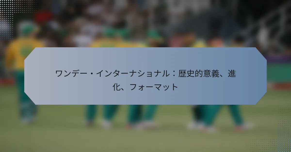 ワンデーインターナショナル(ODI)クリケットは、ゲームに大きな影響を与える多くの課題に直面しています。これらの課題は、環境要因から技術の進歩まで多岐にわたり、選手のパフォーマンスや観客の関与に影響を与えます。