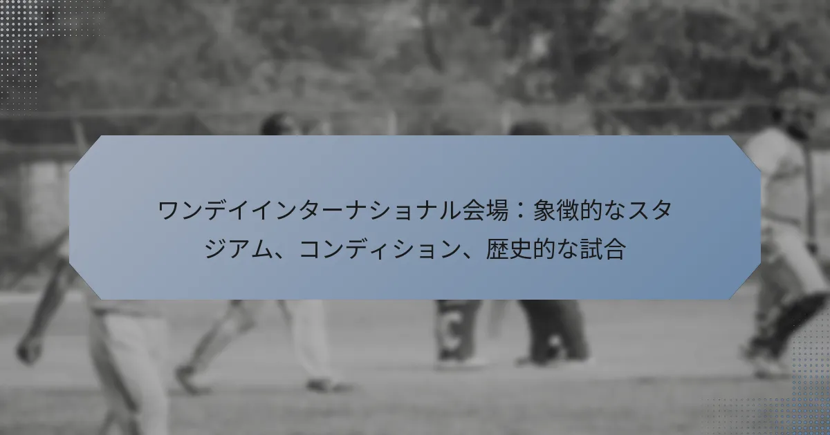 ワンデーインターナショナル(ODI)会場でのプレイ条件は、試合の結果に大きな影響を与えることがあります。ピッチの特性、天候、高度、ホームチームの利点などの要因が、ゲームの形成において重要な役割を果たします。