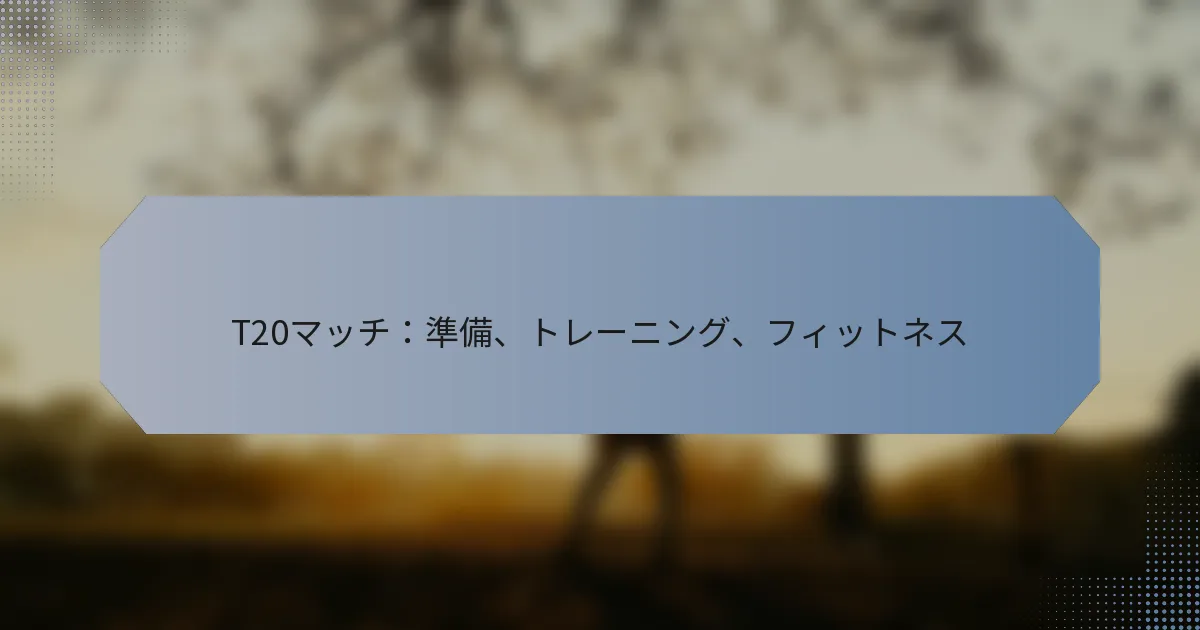 T20マッチの効果的な準備は、対戦相手の分析、ピッチコンディションの理解、確固たる試合当日のルーチンの確立の組み合わせを含みます。これらの戦略は、選手がパフォーマンスを向上させ、T20クリケットの速いペースに適応するのに役立ちます。