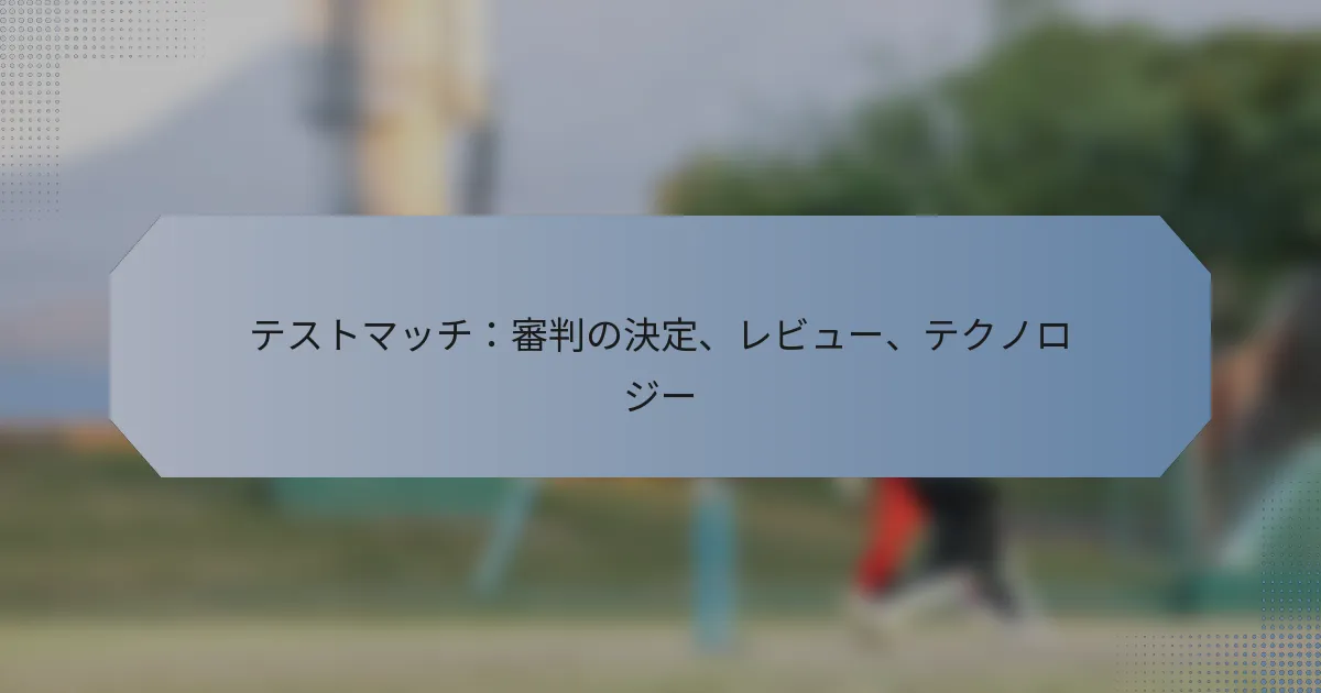テストマッチにおける重要な審判の決定には、試合の結果に大きな影響を与えるさまざまな判定が含まれます。これらの決定は、退場処分から境界線の判定まで多岐にわたり、正確性を確保するために技術を使用してレビューされることがよくあります。